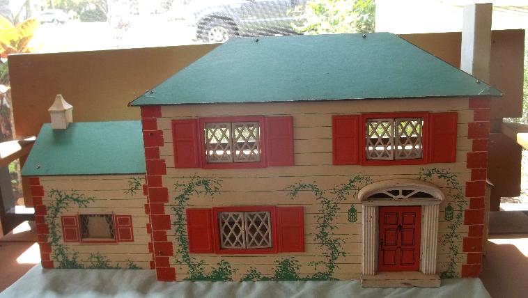 I am not sure of the production date, but it is pictured in the Keystone Toy catalog of 1938-39. It has the unusual hip roof design of an older house ...#6 on my Keystone list of houses. Plus, it is the only Keystone I have seen with a side chimney and a cupola. Update 2023: I was able to purchase this house from Geraldine's collection.